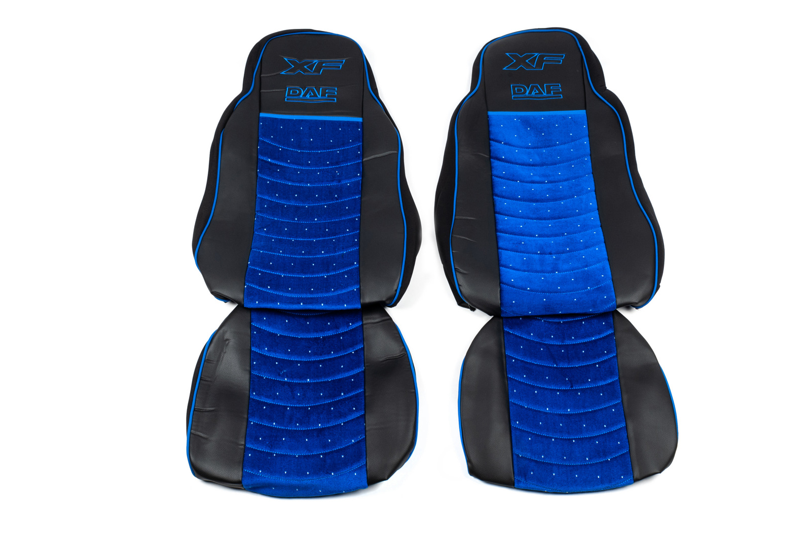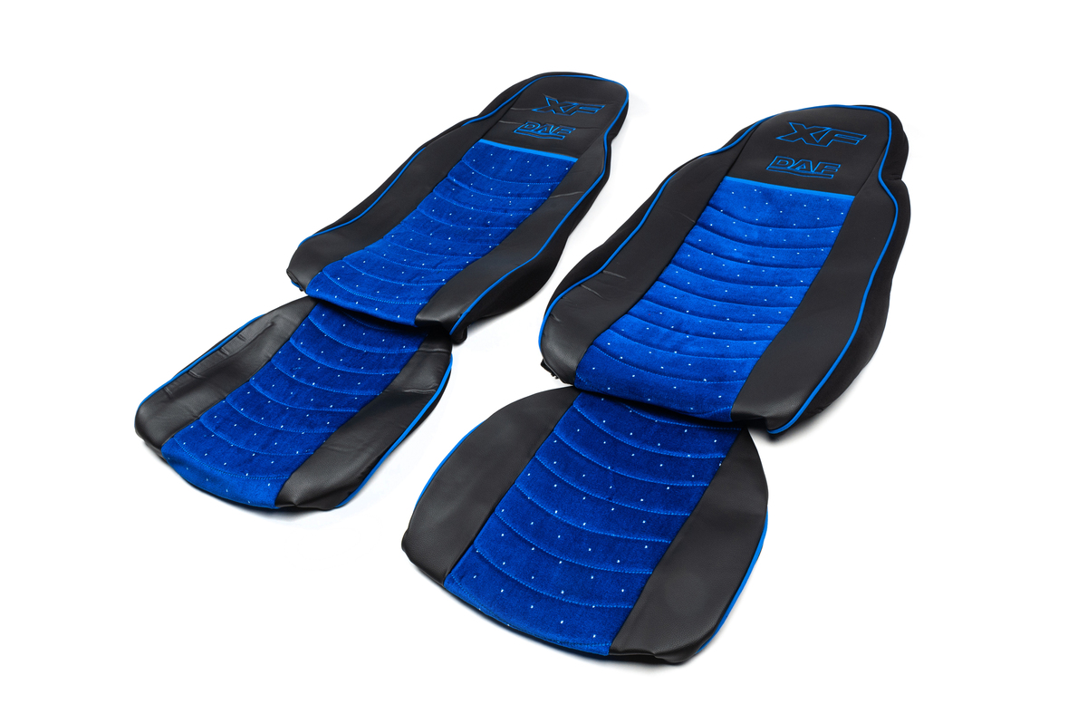 Чехлы на сиденья Daf XF 95 (03-07) екокожа + синяя велюровая вставка