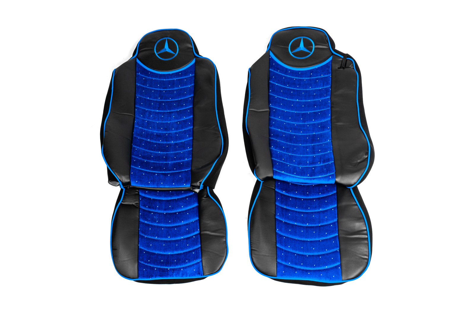 Чехлы на сиденья Mercedes Actros екокожа + синяя велюровая вставка