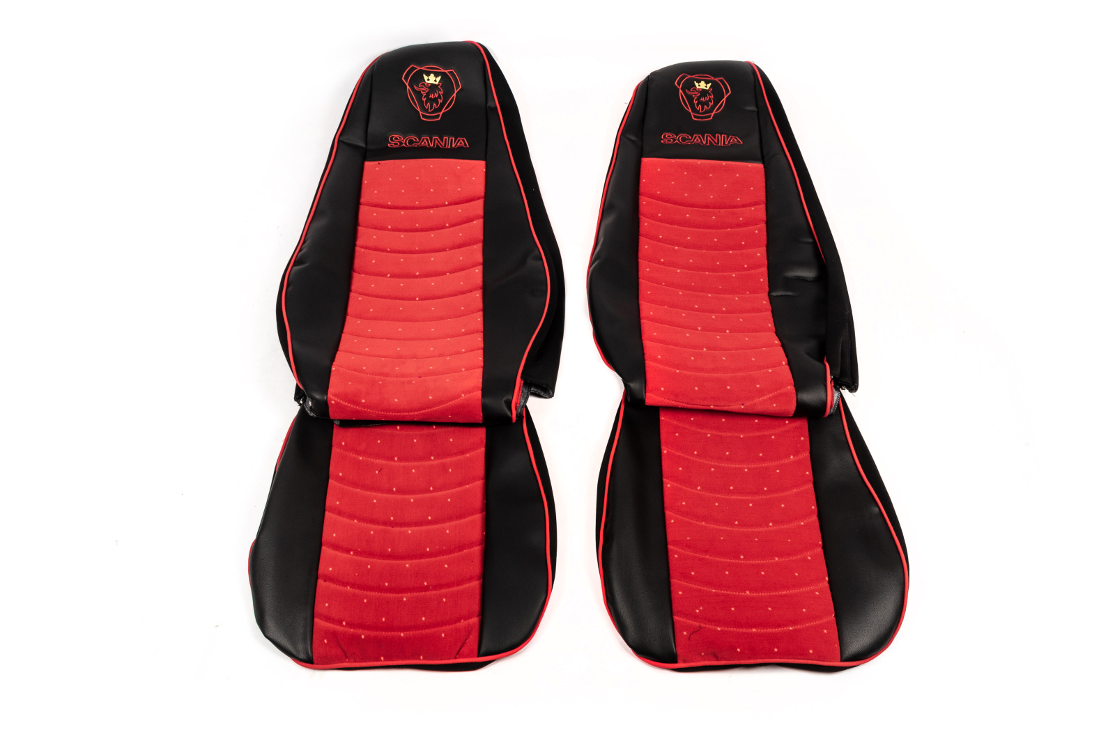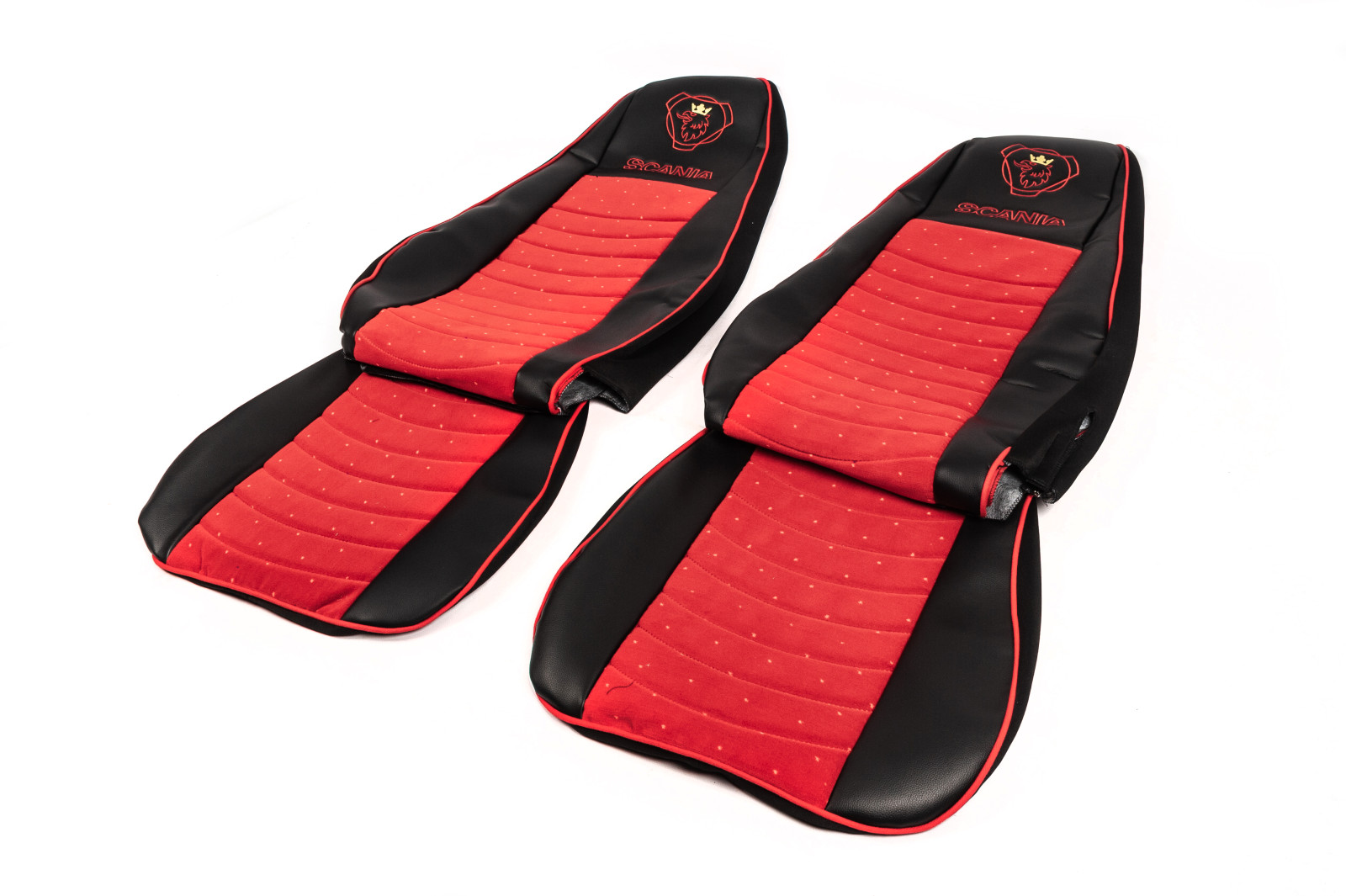 Чехлы на сиденья Scania екокожа + красная велюровая вставка