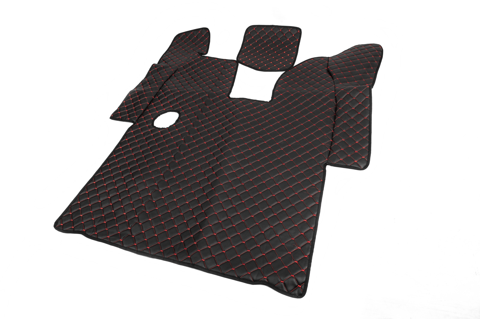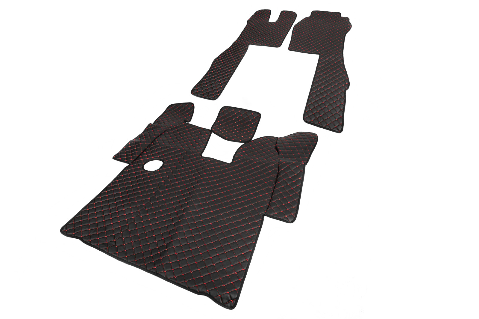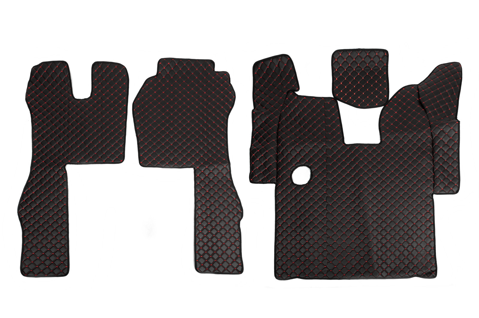 Коврики в салон Scania R (2013-...) экокожа черные с красной прошивкой (механика)