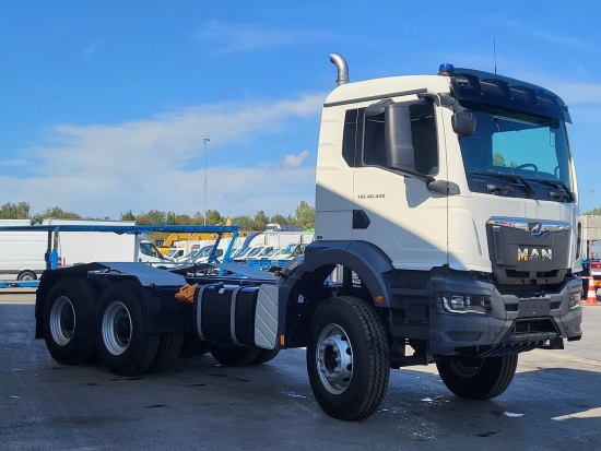 Экстерьер TGS 40.400 выполнен в практичном стиле: высокая посадка с большим клиренсом, мощная рама, компактная кабина M или L. Широкая решетка радиатора, массивные зеркала и защитные элементы подчеркивают внедорожный характер.