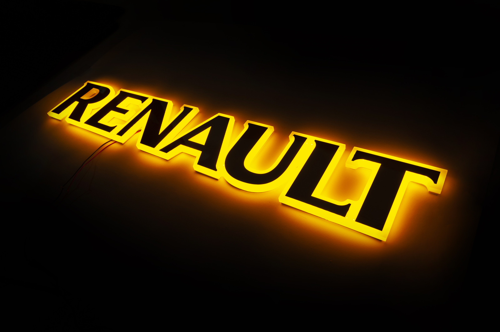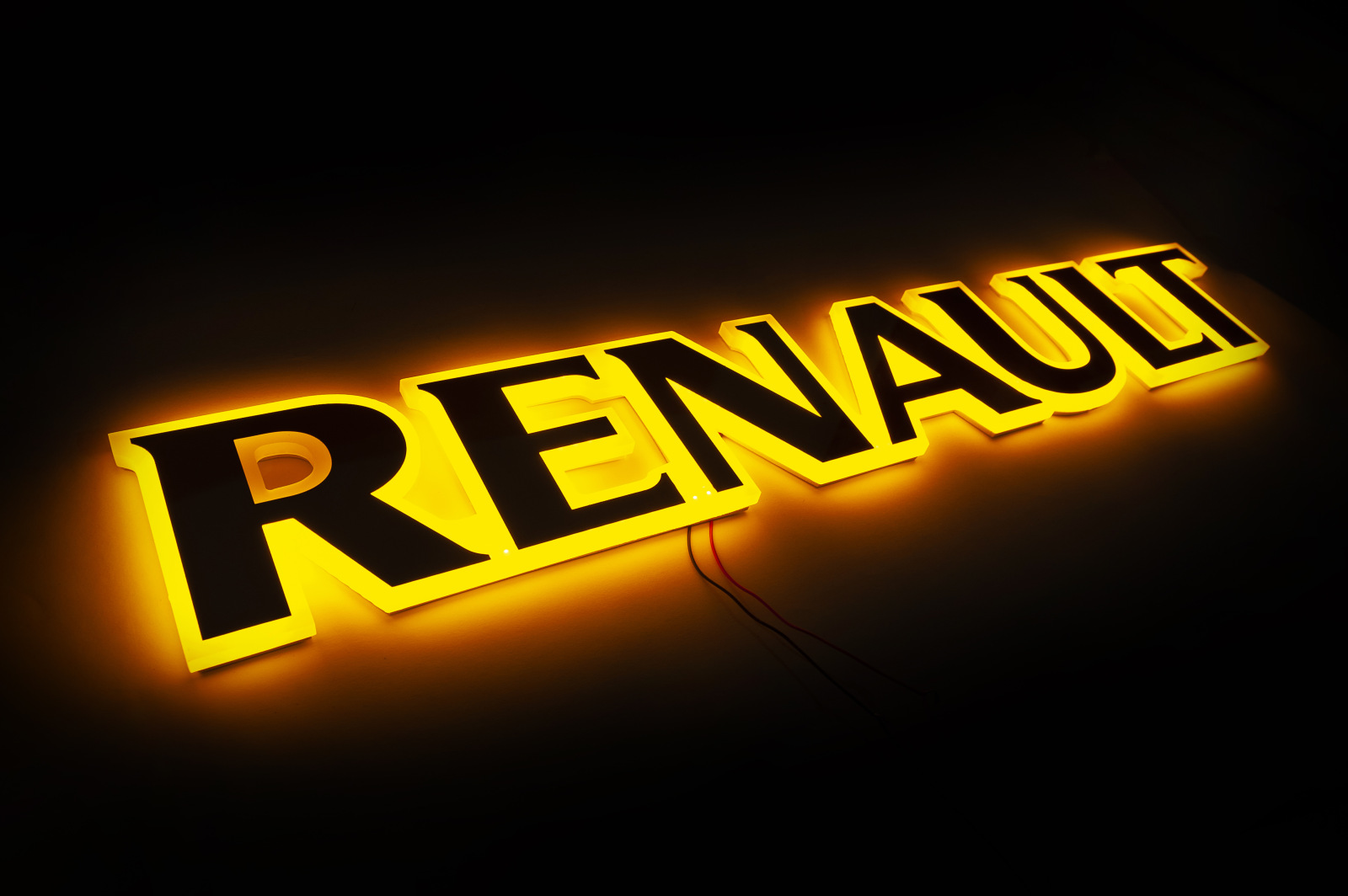 Надпись на решетку Renault нержавейка с оранжевой подсветкой (79см.*13см.)