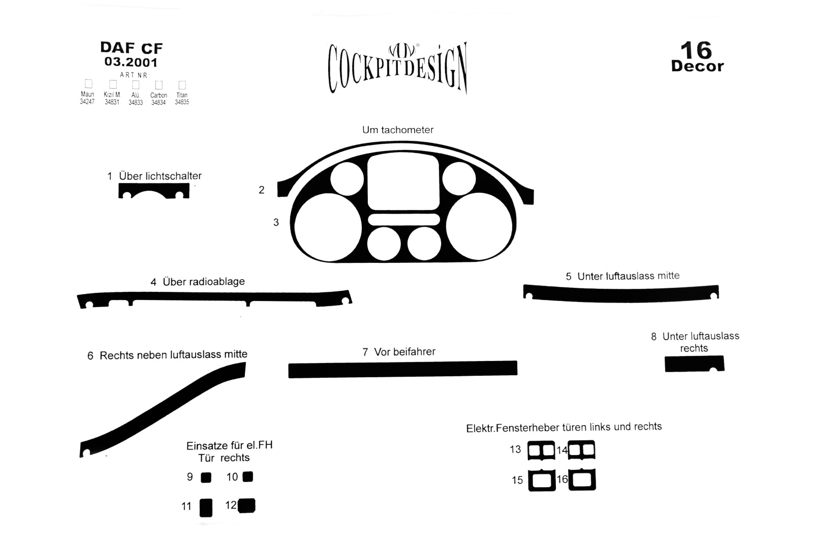 Накладки на панель Daf CF 2001-2010 (Meric, 16 деталей) 9400002
