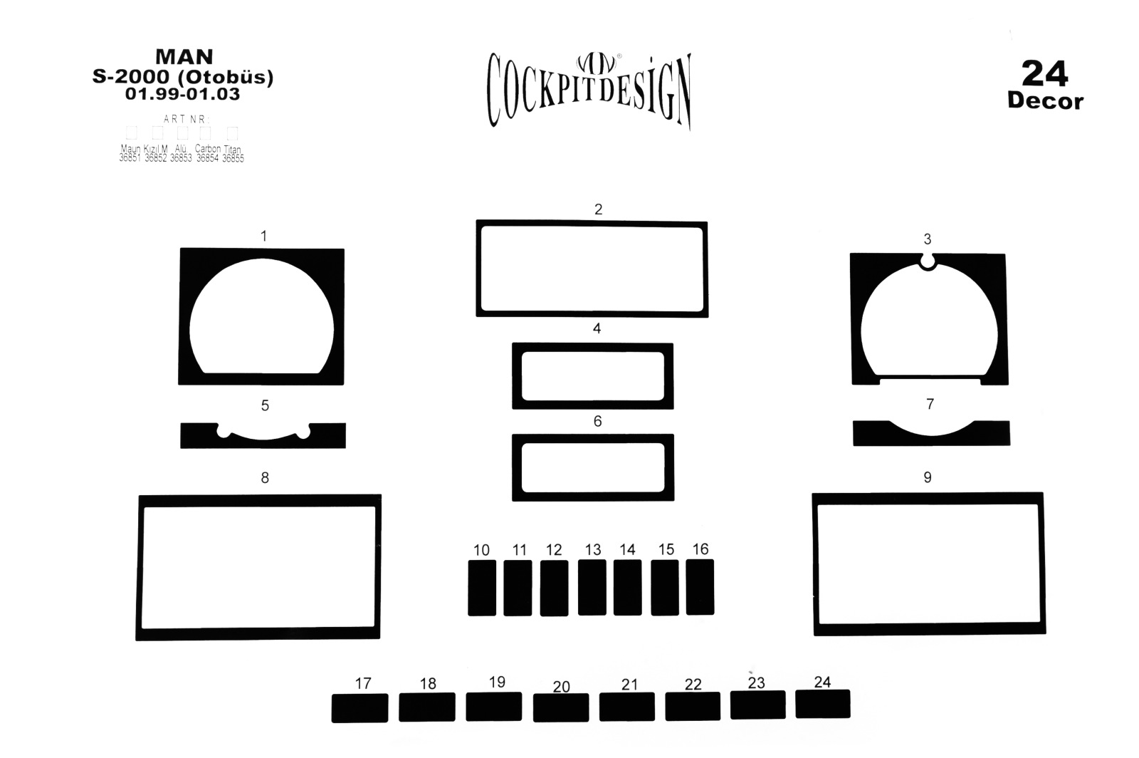 Накладки на панель Man S2000 1999-2003 (Meric, 24 деталей) 94000017