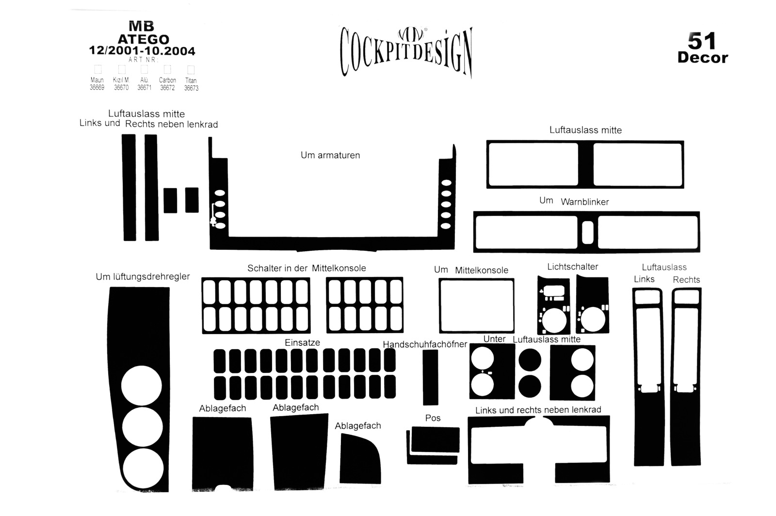 Накладки на панель Mercedes Atego-Axor (2001-2004) (Meric, 51 деталей) 94000048
