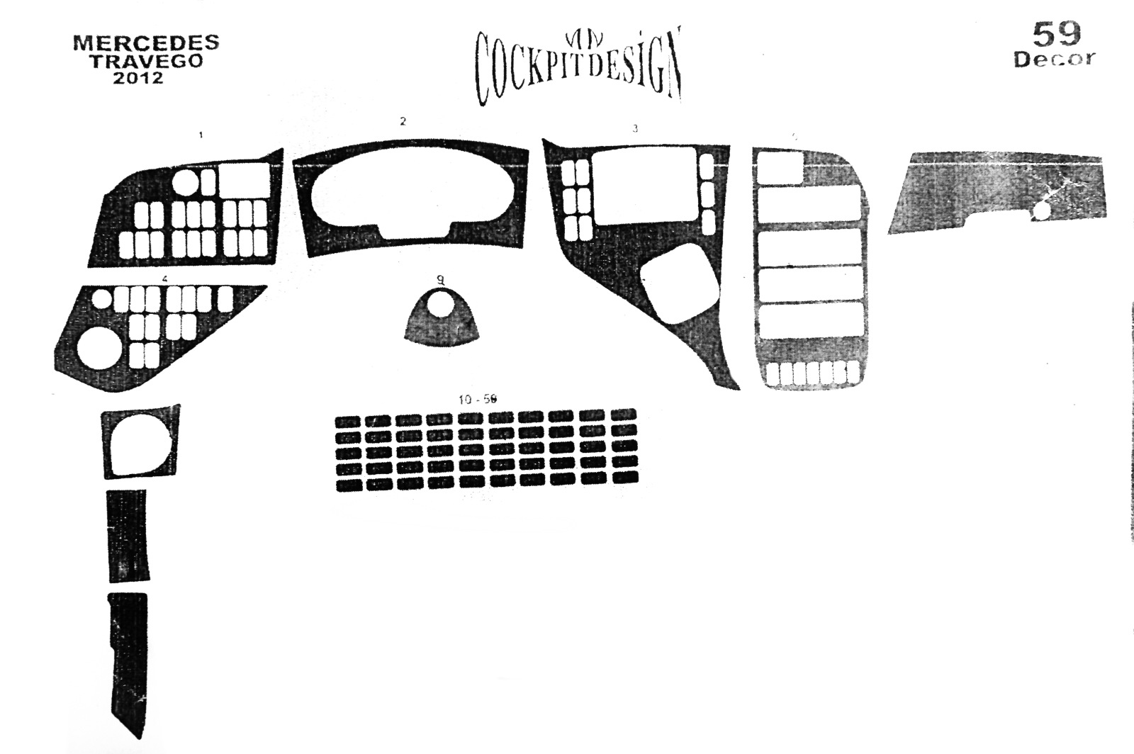 Накладки на панель Mercedes Travego 2012-2018 (Meric, 59 деталей) 94000035