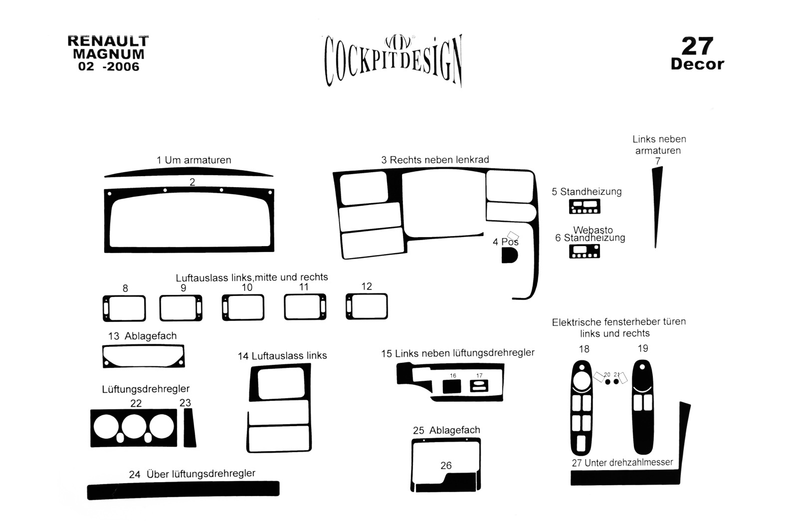 Накладки на панель Renault Magnum 2002-2006 (Meric, 27 деталей) 94000069
