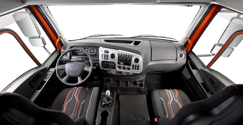 Салон Ford Cargo 4142D встречает качественным и продуманным с эргономической точки зрения обустройством рабочей зоны водителя. Кроме этого внутреннее убранство авто может похвастать такими особенностями: