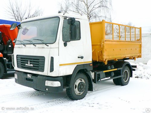 Грузовая модель МАЗ-4571 с колесной схемой привода 4x2 являет собой среднетоннажный самосвал, предназначенный для транспортировки различных насыпных грузов по дорогам с любым типом покрытия. На грузовик устанавливается бескапотная откидная кабина с привлекательным и современным внешним видом.